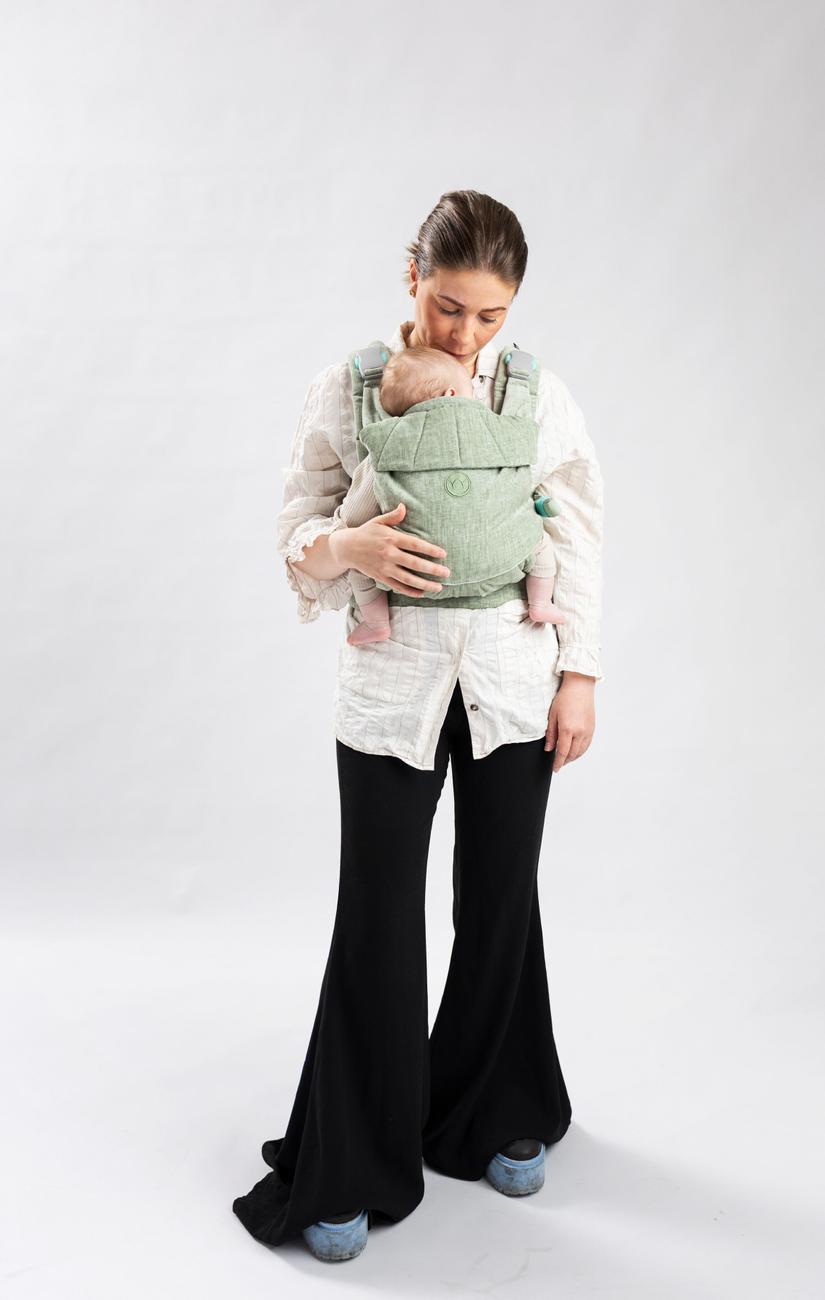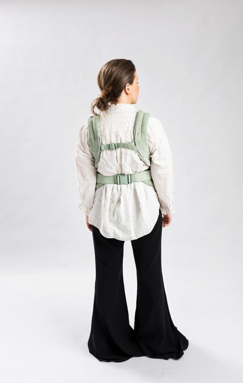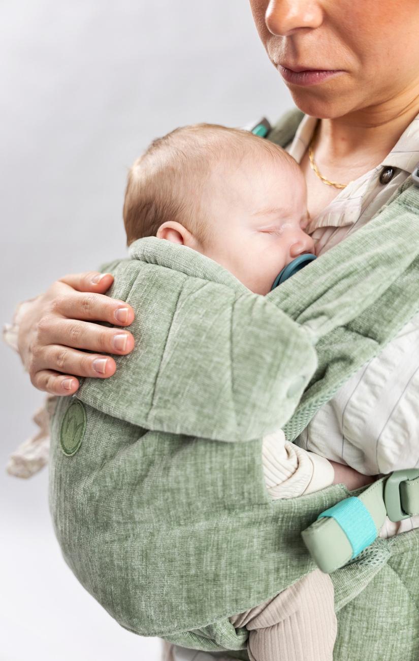 Najell Rise er lavet i letvægt stoffet airmesh inderst og sluttet af med det smukke velour-look yderst, og det er derfor både smuk, åndbart, let og ikke mindst formbar - som sikre at både dig og dit barn bliver støttet til den rigtige position, hvad end det er mave mod mave eller på ryggen dit barn sidder. Selen kan også bruges med barnet fremadvendt.