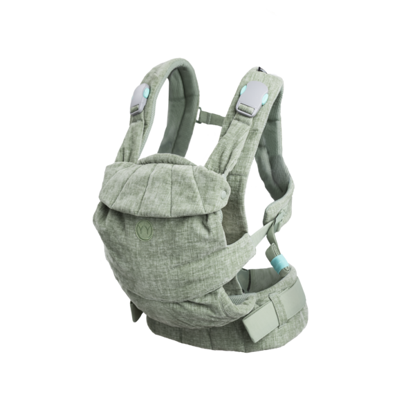 Selen tages først på bæreren og er lavet sådan der er stropper både foran og bagpå dig - det er derfor en sele som støtter dig som bærer ekstra godt med sit specielle design. Dernæst sættes baby i sele og med blot to små klik med de magnetiske spænder foran, er du klar til at erobre verden sammen med dit barn.