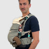 Sele er som skrevet hovedsageligt lavet i letvægt stoffet airmesh, og det er derfor både åndbart og let og ikke mindst formbar - som sikre at både dig og dit barn bliver støttet til den rigtige position, hvad end det er mave mod mave, fremadvendt på maven eller på ryggen dit barn sidder.