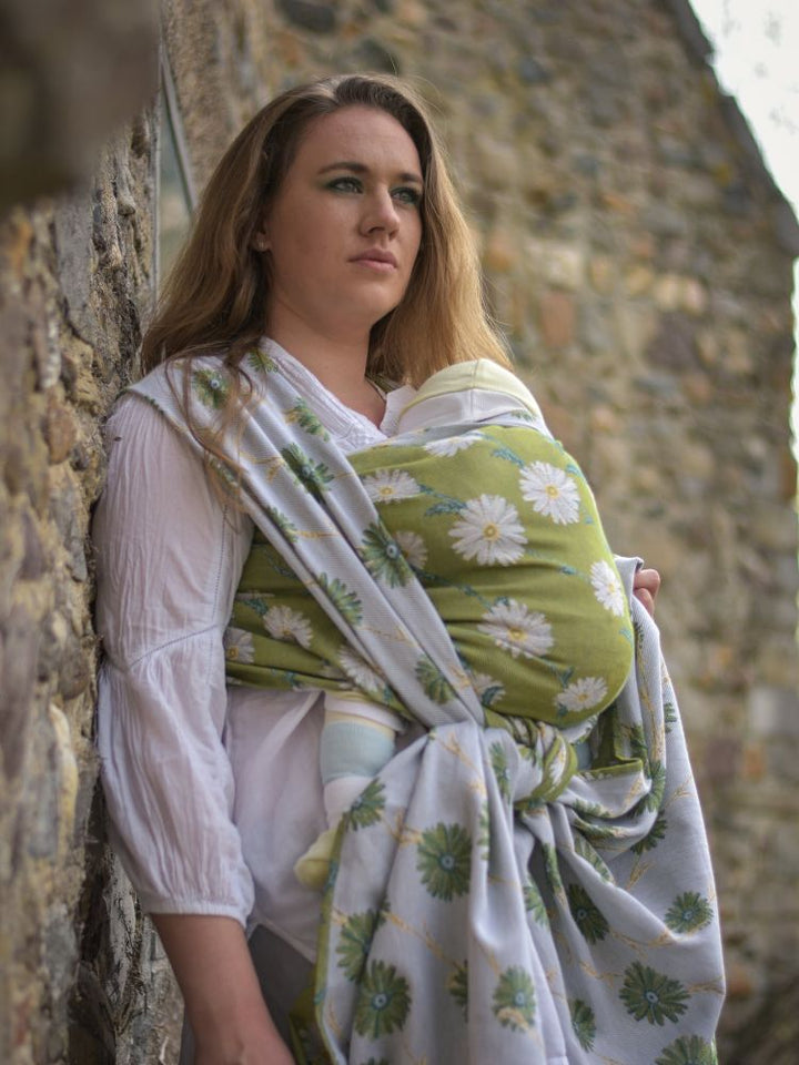 Yaro Chamomile Trinity Yellow Green Seacell glossy. Så fin en vikle, med en lille smule fest og en masse naturlighed.